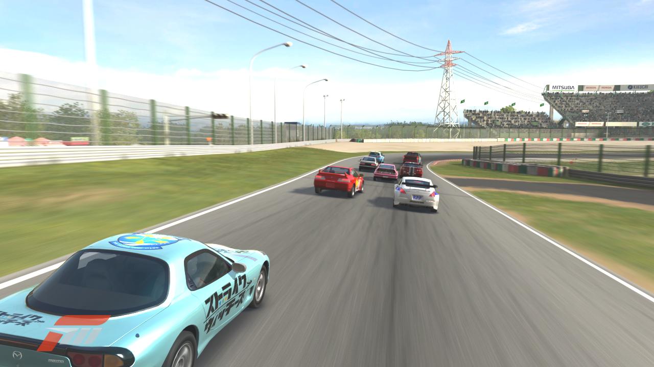 鈴鹿1コーナーに飛び込む面々、スタート直後なんで、8台全部写ってる